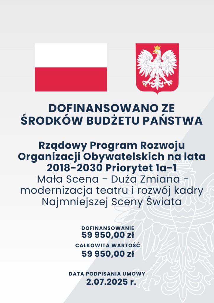 Fundacja Najmniejszej Sceny Świata otrzymała dofinansowanie w ramach Programu Rozwoju Organizacji Obywatelskich w latach!