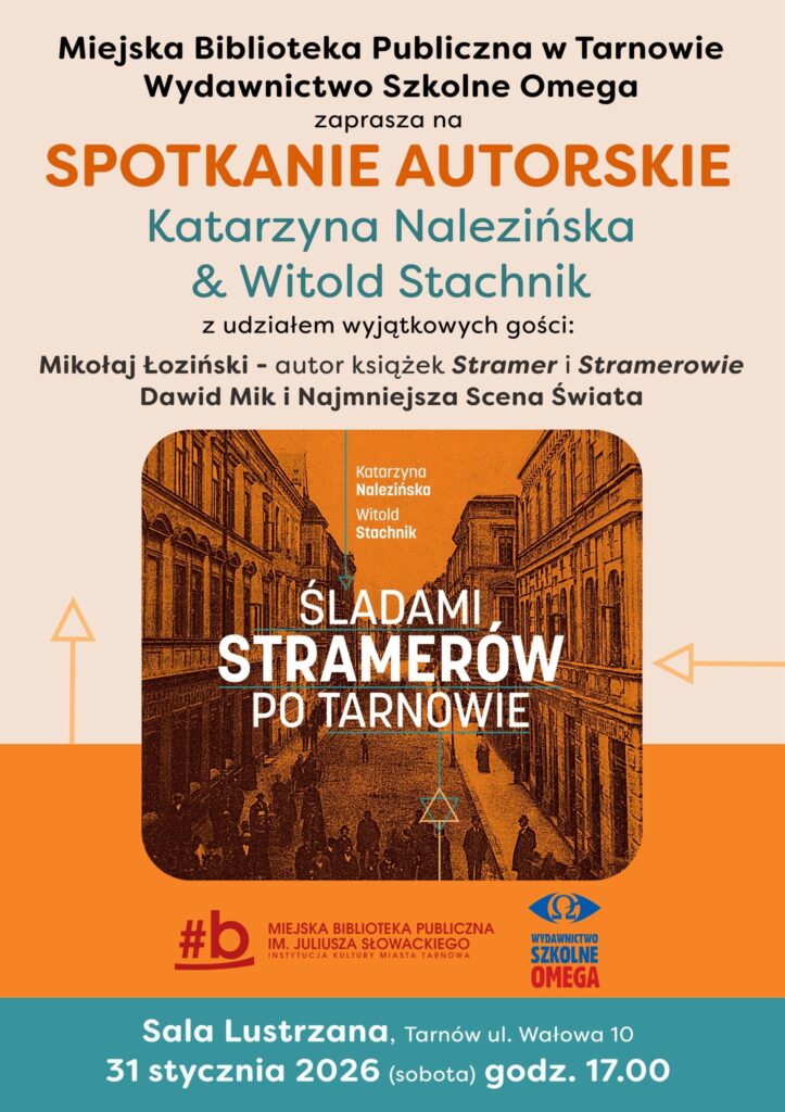 ŚLADAMI STRAMERÓW PO TARNOWIE to artystyczno-edukacyjny projekt literacko-historyczny inspirowany powieścią „Stramer” Mikołaja Łozińskiego – jedną z najważniejszych współczesnych narracji o żydowskim Tarnowie i losach jego mieszkańców w przededniu Zagłady. Książka łączy elementy literatury pięknej, reportażu historycznego i przewodnika miejskiego, tworząc wyjątkową opowieść o pamięci, tożsamości i przemijaniu. Jej celem jest przybliżenie czytelnikom – zarówno tarnowianom, jak i odbiorcom spoza regionu – miejsc, historii i ludzi, którzy współtworzyli niegdyś bogaty, wielokulturowy krajobraz miasta.